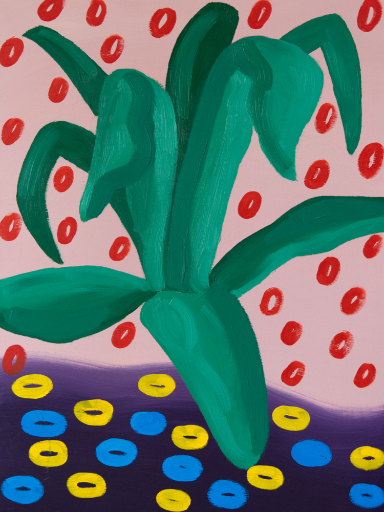 “Botaniska” is een serie plantportretten geïnspireerd op de bijzondere plantvormen in de botanische tuinen in Göteborg en Stockholm. Het blauwe, diffuse, noordelijke zomerlicht heb ik vertaald naar een palet met zo min mogelijk geel.