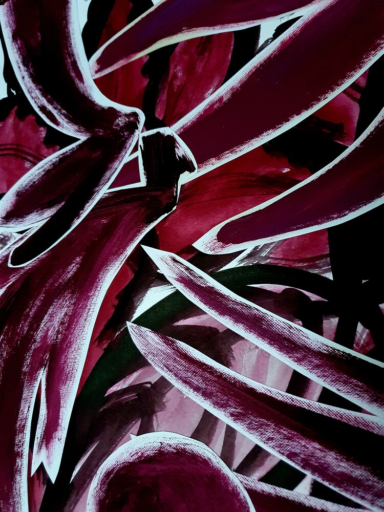 Allegro Arum Lily is one of the most cheerful collages in this series, hence the name Allegro. It is an uptempo, cheerful section of the composition that opens the door to new possibilities. No longer solely dark purple, but with light pink and red tones, it is a work full of curiosity.