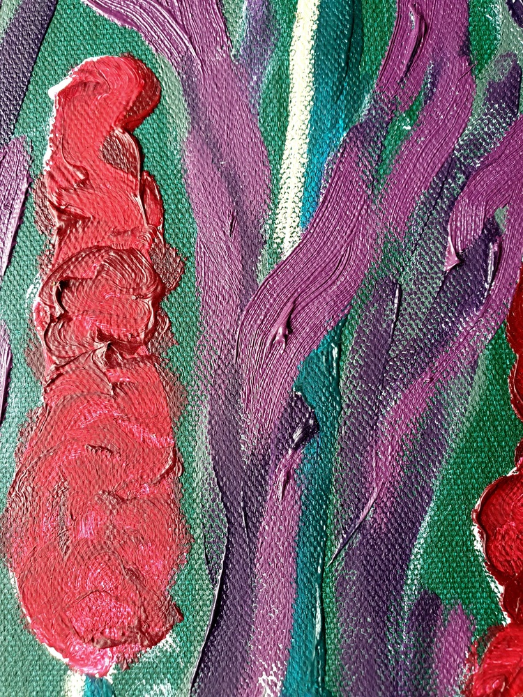 Dark Red Knotweed Catches the Moonlight is one of the paintings I made to capture my mother’s botanical legacy and the comfort the garden offered me the summer after her passing. The seemingly indifferent determination of the plants, which, like all the summers before them, came into bloom, offered me something to hold on to. Something to fall back on while something else collapsed.