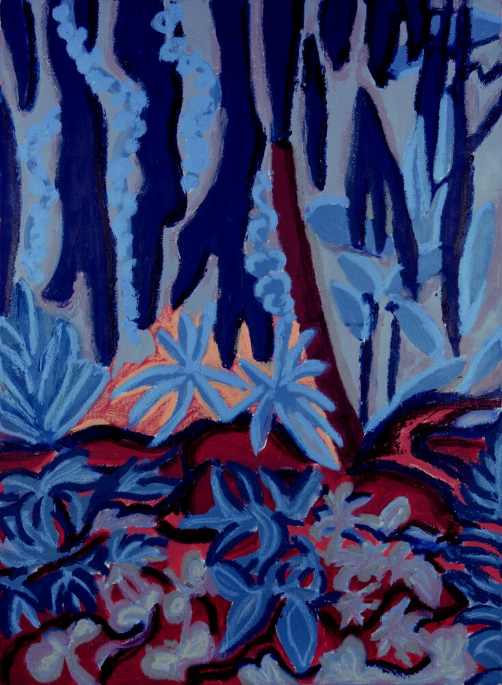 Within the Glasgow glasshouses there is a section filled with the most amazingly coloured begonias. So bright and so contrasting that in a way they almost feel unnatural. That otherworldly quality is captured within this painting. The leafs are oozing a neon-like light which is in high contrast with the dark background.