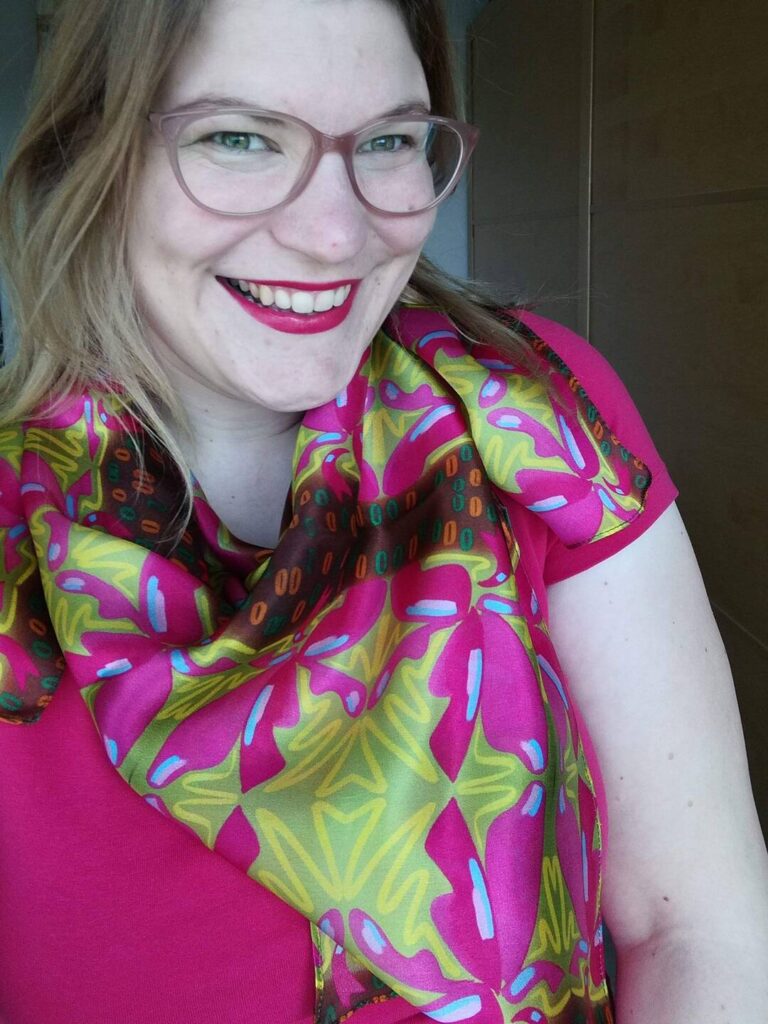 I kept going until I could decorate an entire booth in Majorelle style, as I did at the Eindhoven Maker Faire in 2019. Fabrics were transformed by the meter into curtains, dresses, pants and tops, silk scarves, canvas cushion covers, greeting cards, postcards, and, in collaboration with other creative entrepreneurs, rugs and jewelry.