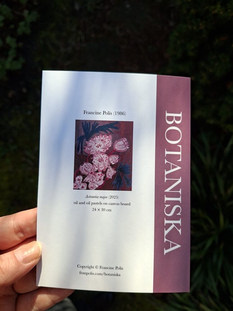 Op de achterkant van de kaart vind je alle informatie over het schilderij en een link naar de pagina over de Botaniska serie.