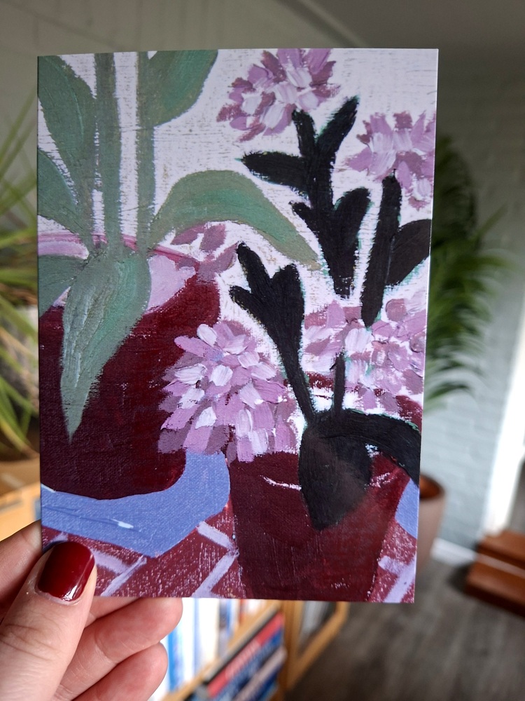 De bloeiende bloemen maken de kaart ook zeer geschikt als bedankkaart of als onderdeel van een mooi cadeau of bos bloemen.
